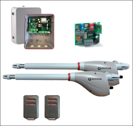 KIT BÁSICO CALYPSO 2 HOJAS - ERREKA PARA FRACCIONAMIENTOS CONSTA DE:•1 Tarjeta de Control modelo VIVO 203M con gabinete especial para estar a la intemperie•1 Receptor de señales de radiofrecuencia integrada en la Tarjeta de Control•2 pistones con motor a 127 volts•2 llaves de desbloqueo•2 Controles remotos modelo IRIS•Herrajes para la instalación•12 m de cable uso rudo 3x16 de cobre al 100%•Instalación con cableado aparente•18 meses de garantía contra defectos de fábrica