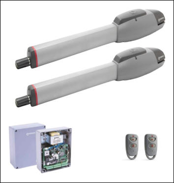 Motores KAIROS electromecánicos adecuados para la automatización de portones abatibles de 2 hojas.