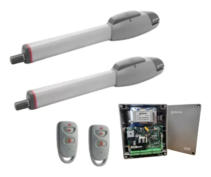KIT Portones hasta 5.00 m de ancho y 250 kg depeso por hojaERREKA KAIROS RÁPIDO con baterìas de respaldo.Incluye 2 Pistones, 2 Controles remotos LIRA, tarjeta electrónica, 2 baterías de 12 volts, 12 m de cable uso rudo, herrajes e instalaciòn. Indicado para portones residenciales.30 usos por hora. Abre en 15 segundos